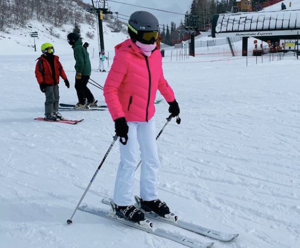 Mostly because my husband coaxed me. He’s one of those amazing double black diamond skiers who, long ago, probably resembled the six-year-old who careened off my backside. But, because I love him (but more so because I love the cute outfits), I said yes to another round of mountain mortification.